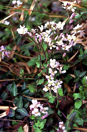 阿蘇の自然 スズシロソウ スズシロソウ まだ雪が残る渓谷や岩場に咲き南阿蘇に多いようです。極稀に紫花もあります。和名:蘿蔔草 科名:アブラナ 季節:春参考阿蘇デジタル博物館 更新日: 2012-10-12 (金) 00:00:00 (4863d)